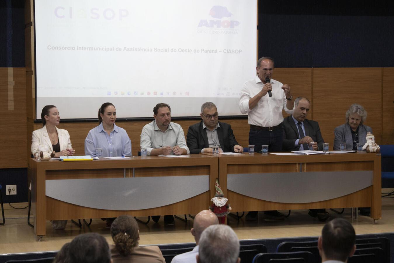 O Auditório Acary Oliveira, em Toledo, sediou na manhã desta terça-feira (18) a assembleia geral ordinária do Consórcio Intermunicipal de Assistência Social do Oeste do Paraná (Ciasop). O encontro reuniu gestores públicos e técnicos de Secretarias Municipais de Assistência Social da região para discutir e aprovar os procedimentos que orientarão o funcionamento da Casa Abrigo Regional para Mulheres em Situação de Violência, cuja implantação está em fase final.