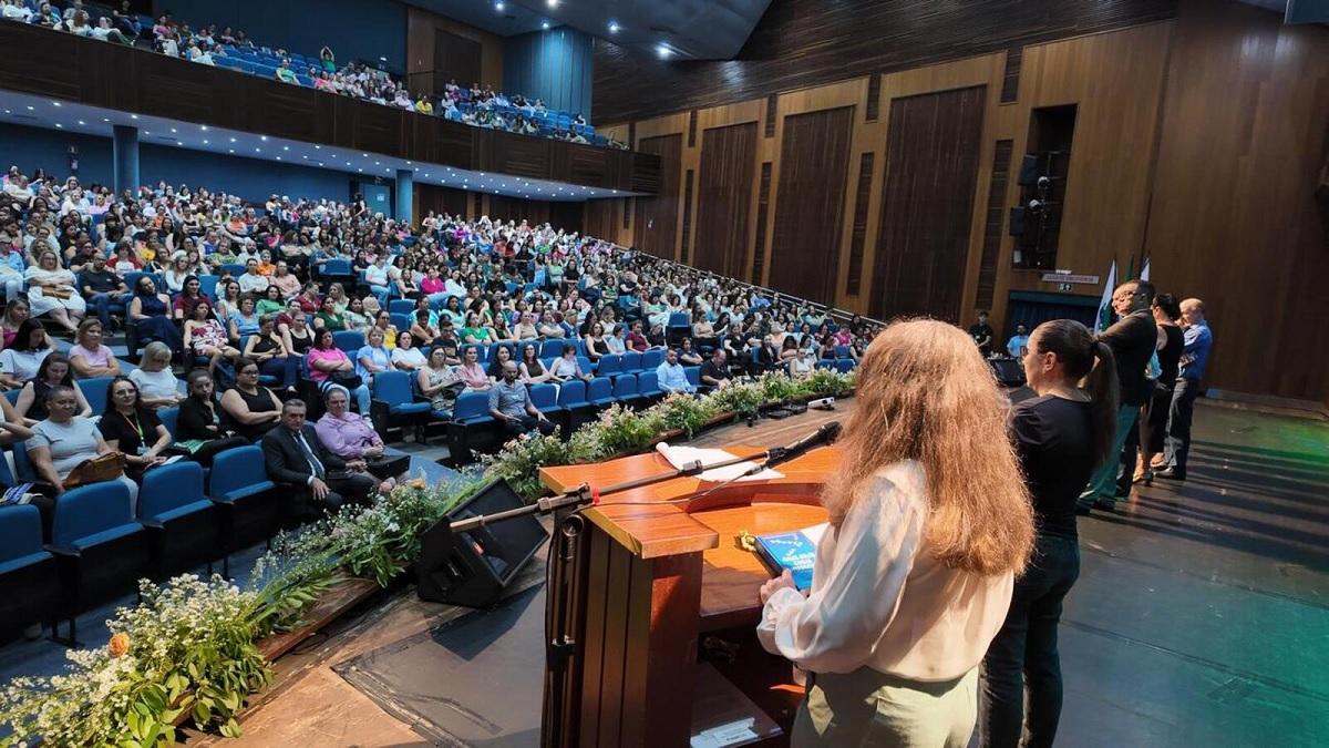 TOLEDO (PR) – O início do ano letivo da rede municipal de Toledo em 2026 foi marcado por um evento de grande porte nesta quinta-feira (29). A mobilização reuniu cerca de 2.400 servidores da educação e ocorreu simultaneamente em dois pontos estratégicos da cidade: No Teatro Municipal de Toledo e no Centro de Eventos Deziré Refosco. Com foco em palestras motivacionais e técnicas, além de apresentações culturais, a ação prepara as equipes para o retorno dos alunos às salas de aula, previsto para a próxima segunda-feira, dia 2 de fevereiro.
